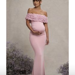 INFLORESCENCE Blush Pink Mesh Floral Bardot Maternity Maxi Dress$90Modesto, CA