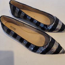Women's Michael Kors Shoes Flats Black Silver Sequin Sequins Size 8.5$10Tracy, CA