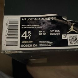 Air Jordan 1 Mid Size 6.5y DS$70Stockton, CA