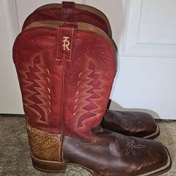 Tony Lama 3R™ cowboy boots with a brown square toe ostrich leather foot and a red leather shaft.$100Modesto, CA
