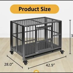 Heavy Duty 42" Dog Crate, Folding Dog Kennel No Assembly with Lockable Wheels, Double Door $120Riverbank, CA