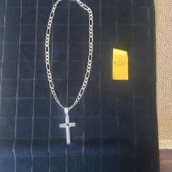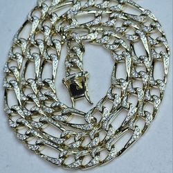 Gold Over 925 Silver Figaro Chain Necklace With Cubic Zirconia 24 Inch 8 MM 71 Grams$180Stockton, CA