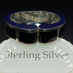 Rare-thick Black Onyx. Soft Springed Adjustable Solid STERLING SILVER bangel Bracelet $125Stockton, CA