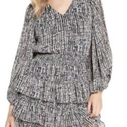 Express - Abstract Print V- Neck Long Sleeve Tiered Skirt Mini Dress Size L$25Salida, CA