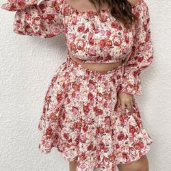 Cute 2 Piece Summer Set, White Flirty Set, Purple Flower Design, Top And Skirt$10Turlock, CA