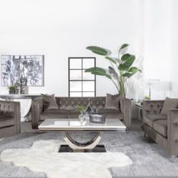 Brand New 2PC Light Grey Velvet/Gold Sofa and Loveseat Set $1,499Tracy, CA