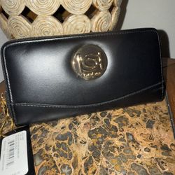 New Bebe Black Gold Melendy Zip Around Wallet Clutch$15Patterson, CA