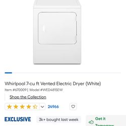 Whirlpool 7-cu ft Vented Electric Dryer (White)$240Stockton, CA
