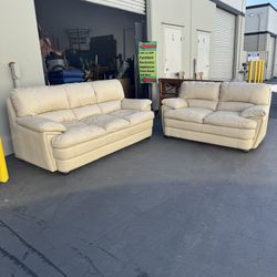 Set of 2 Beige Cream Leather 3 Seater Sofa and Loveseat Very Clean and Good Condition$350Garden Grove, CA