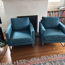 Mid-century Modern Green Striped Velvet Lounge Chair & Ottoman Set $350Santa Monica, CA