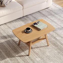Small Coffee Table for Living Room, 2-Tier Mid Century Modern Small Tables with Shelf Storage, Storage Coffee Table with Rounded Corners (Solid Oak Wo$60Chino, CA