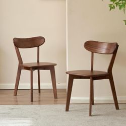 Oak Dining Chairs, Kitchen Chairs, 100% Solid Wood Modern Dinner Chair with Curved Backrest, Dining Room Chair for Kitchen, Living Room, Study (2PK, W$60Chino, CA