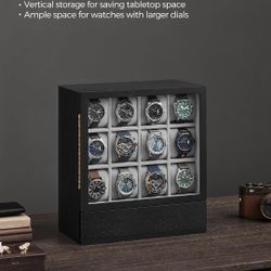 12-Slot Watch Box, Watch Display Case with Window, Solid Wood Veneer, Velvet Lining, Vertical Storage, Space Saving, Gift Idea, Ebony Black $35Santa Ana, CA