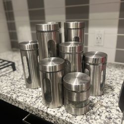 Kitchen canister Set Stainless/Glass 8 piece With Lids Round Storage Organization $15Orange, CA
