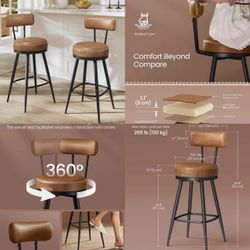 Bar Stools Set of 4. Lbc089k Swivel Counter Height Bar Stools with Back, Synthetic Leather with Stitching, Mid-Century Modern, 25.6-Inch $100Rancho Cucamonga, CA