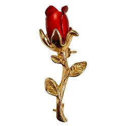 Vintage 1980s Petite Rosebud Rose Brooch Gold Tone Finish & Red Enamel$20Lake View Terrace, CA