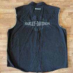 Harley Davidson Sz 3xl black Vintage button up shirt with distressed sleeves #biker #denim$40Los Angeles, CA
