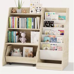 Kids Bookshelf and Toy Storage, 4 Tier Toddler Bookshelf with Movable Drawer 5 Sling Pockets, Montessori Book Shelf for Kids Room, Playroom, Nursery ($60Torrance, CA