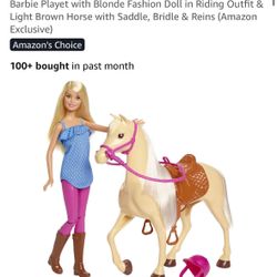 Barbie Playet with Blonde Fashion Doll in Riding Outfit & Light Brown Horse with Saddle, Bridle & Reins$20Bell Gardens, CA