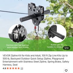 VEVOR Zipline Kit for Kids and Adult, 100 ft Zip Line Kits Up to 500 Ib, Backyard Outdoor Quick Setup Zipline, Playground Entertainment with Stainless$35Upland, CA