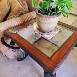 Square end table with glass and NY met museum art$20Torrance, CA