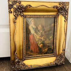 Vintage 19th Century Print In decorative Ornate Gilt Frame With Convex Glass $365Long Beach, CA