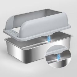Cat Litter Box 6 in. Deep XL Extra-Large Stainless-Steel Cat Litter Box with Scoop Wide Filtering Foot Board, grey$25El Monte, CA