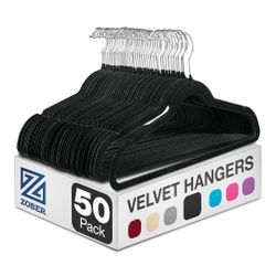 ZOBER Black Velvet Hangers 50 Pack - Clothes Hangers, Coat Hanger for Pants & Dress Clothes - Non Slip w/ 360 Degree Swivel, Holds up to 10 lbs - Stro$15Santa Ana, CA