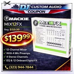 Mackie Mixer 12 Channels On-Board Effects Mic Preamps 3-Band EQ Mixboard MIX12FX 🚨 Payment Options Available 🚨 No Credit Needed 🚨 $1Artesia, CA