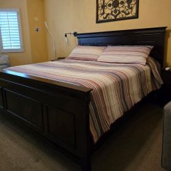 California King size bed with one nightstand,espresso brown. Includes Bedding And box springs. Mattress not included, In Excellent Conditions $170Chino Hills, CA