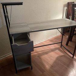 Modern Computer Desk with Monitor Shelf – Wood Top, White Metal Frame (New)$60Irwindale, CA