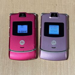 Lot Of 2 Motorola RAZR V3/M Pink Flip Phones Turn On “UNTESTED”No Charger Read! $70Anaheim, CA