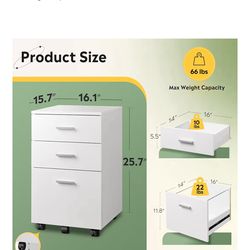 3 Drawer Wood Mobile File Cabinet, Rolling Filing Cabinet for Letter/A4 Size, White$40Anaheim, CA