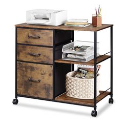 New Rustic Brown Black 2-Drawer File Cabinet Mobile Printer Stand with Lock$75Los Angeles, CA