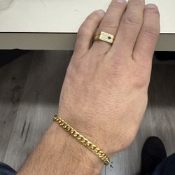 Gold Plated Stainless Steel Bracelet & Ring Set – Elegant Chain Design$35Anaheim, CA