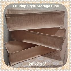 SET OF 3 BURLAP STYLE STORAGE BINS