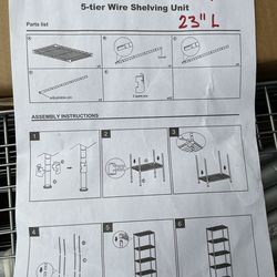 Brand New 5-Tier Metal Shelving Unit (28”W x 12.3”D x59.5”H)