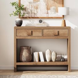 Console Table with Drawers, 40 Inch Narrow Entryway Table with Open Storage Shelves, Mid Century Modern Hallway Accent Tables Behind Couch Table for L$100Ontario, CA