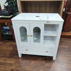 30" Bathroom , Freestanding Bathroom Storage Cabinet , Modern Vanity Cabinet with 2 Water Ripple Doors and 1 Drawer, Soft-Close Design , White