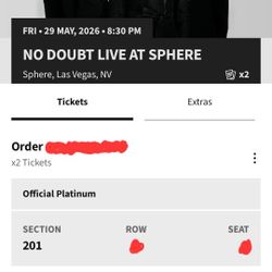 No Doubt At Vegas Sphere 6/12$500Phillips Ranch, CA