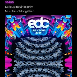 EDC LAS VEGAS GA TICKET$650Los Angeles, CA