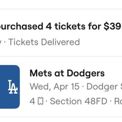 Dodgers Tickets 4/15$50Los Angeles, CA