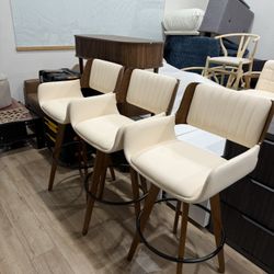 Beige Bar Stools Set of 3, 30 Inch Bar Stools Bar Height,Swivel Barstool with Backs and Arm Rest,Faux Leather Bar Chairs, Mid Century Modern Stools fo$175Arcadia, CA