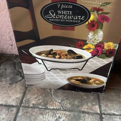 7 Piece White Stoneware Serving Set With Rack $25Inglewood, CA