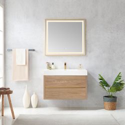 Vinnova, Palencia 36" Single Sink Wall-Mount Bath Vanity in North American Oak with White Composite Integral Square Sink Top $350$350Hacienda Heights, CA