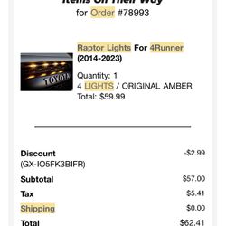 4Runner Raptor Lights Kit Amber New$39West Covina, CA