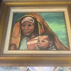 1960 oil on canvas paintings original Depicting Two People Riding Donkey 19/23”$195Long Beach, CA