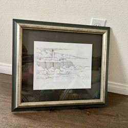 Pen Drawing “Point Arena Light & Pacific Ocean “ Print 16/18 Inches $95Long Beach, CA