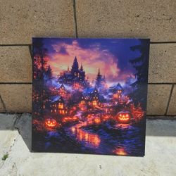Halloween Village Canvas Painting 20Lx20Wx1D$25Artesia, CA