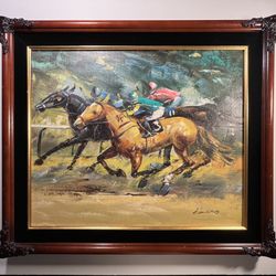 Mid-Century Modern ANTHONY VECCIO Horse Racing Oil on Canvas Painting Signed$800Los Angeles, CA